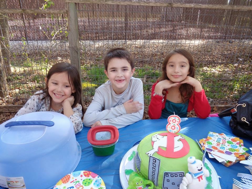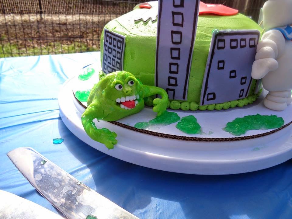 He turned 8! I had already “pinned” inspiration for soccer, Minecraft, and penguin theme cakes in anticipation of his choice. Those are three things I know he loves. But, he definitely has a mind of his own and is full of surprises and without any prompting from me, he chose a “Ghostbusters” theme for his party and cake. I was super surprised by his choice considering we have only seen the movie as a rerun on some channel last summer once! But, in fairness the ghost character “Slimer” and the evil Stay Puft Marshmallow Man do leave lasting impressions!