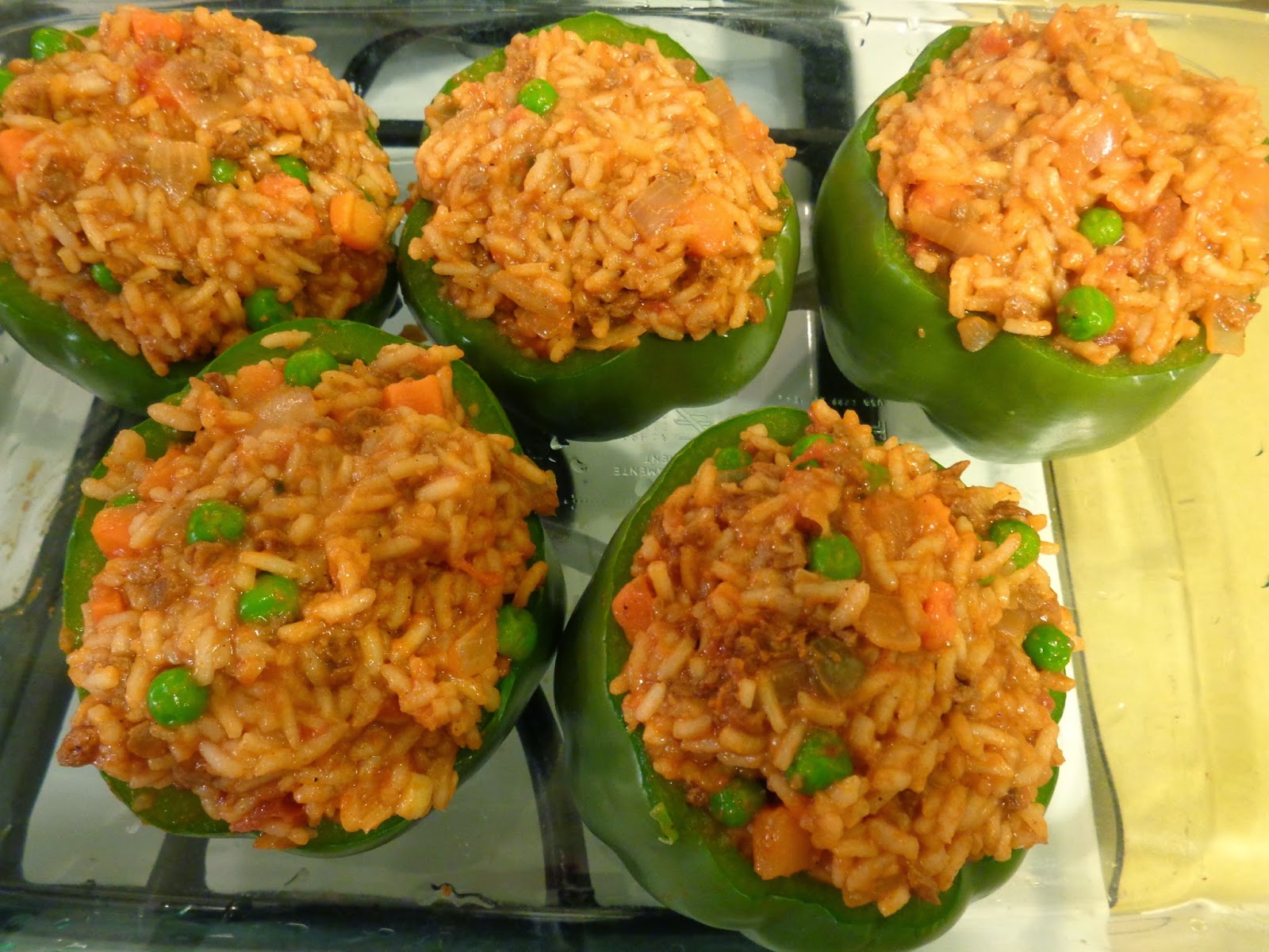 - 6 large green bell peppers, tops removed and seeded