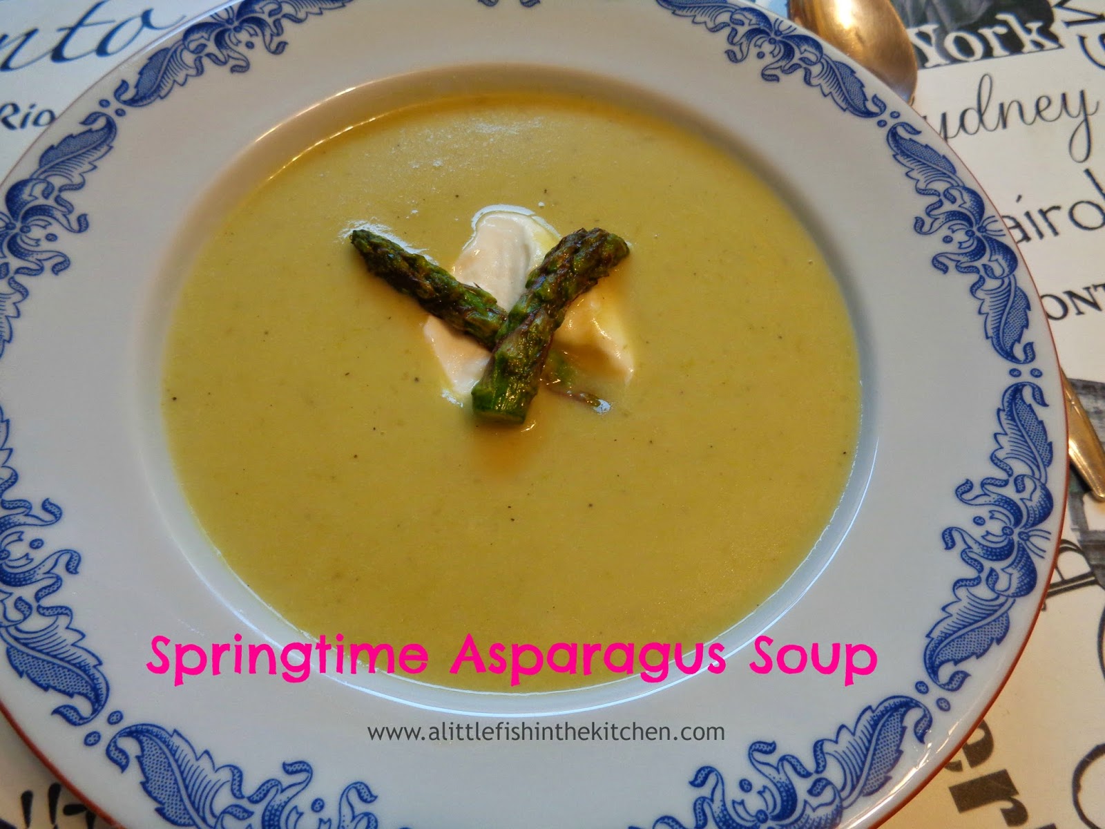 6. Serve the soup hot and, if you want, add a dollop of sour cream or a teaspoon of heaving whipping cream in each bowl. Use the asparagus tips for a pretty garnish.
