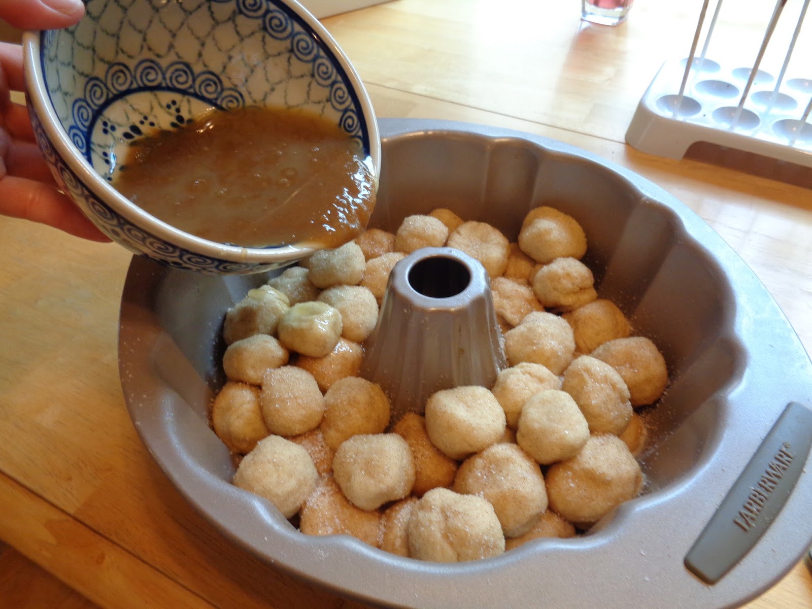 I found lots of variations of the monkey bread recipe online and in my recipe books. Some versions were called bubble loaf, bubble bread and on and on. They all called for making yeast dough which involves lengthy rise times and a few other steps I really didn’t have the energy to take that particular morning. I almost gave up and made a run for the corner store to get that convenient can.
