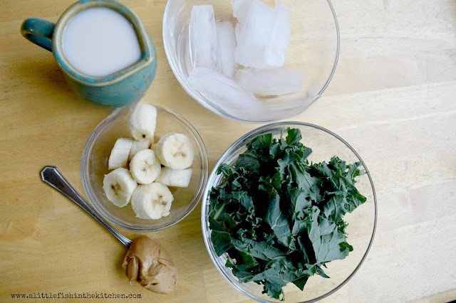 This kale and banana smoothie was breakfast for Evan and I this morning. Our typical morning meal relies heavily on eggs, bread and salty breakfast meats (oh boy, how we love bacon!). So, this was quite a big leap for us and I can tell you honestly that it was better than we both expected. In fact, we drank every drop.