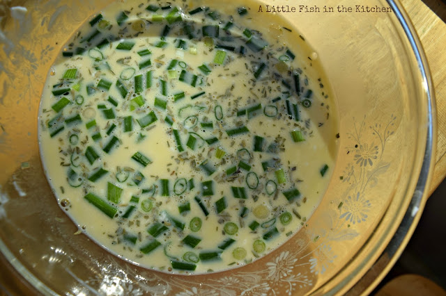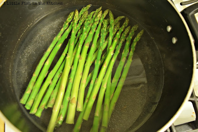 For this dinner strata, I used beautiful, seasonal, fresh asparagus. I briefly blanched it ahead of time to make sure it would be cooked through when the dish was served.