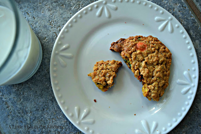 I’ve still got a few summertime recipes to share, but for today I’m sharing one of my favorite fall treats, these classic monster cookies! I felt lucky to have everything on-hand to make a batch last weekend. They are hearty cookies made with whole oats, peanut butter, brown sugar, candy-coated chocolate candy and milk chocolate chips.