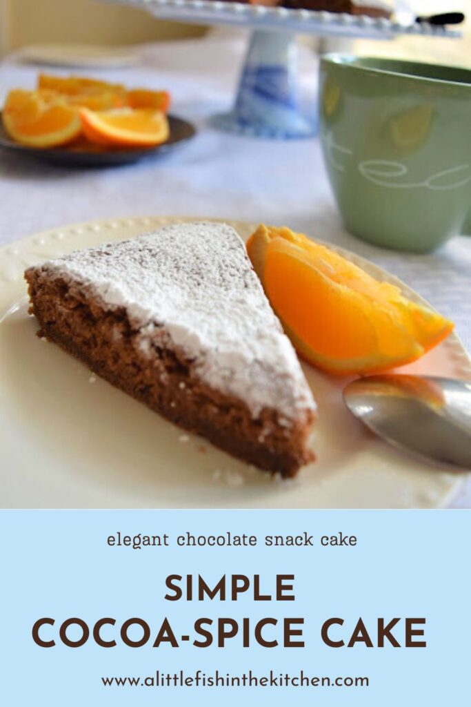 When I’ve got the time, I love to bake two-layer cakes or large sheet cakes complete with homemade frosting or a shiny glaze on top. But, more and more often simple one-layer cakes, like this cocoa-spice cake, are becoming one of my favorite things to serve for an after dinner sweet treat.