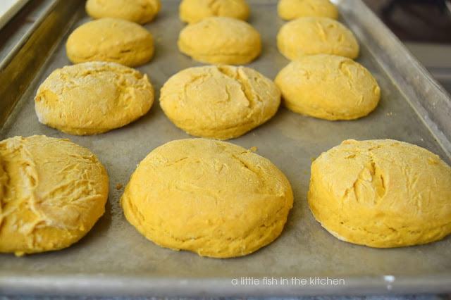 These pumpkin spice biscuits are truly a quick and simple treat. I made a basic baking powder biscuit dough and added a good helping of pumpkin puree and warm spices to it. The icing on these was inspired by those iced cinnamon-raisin biscuits I mentioned earlier.