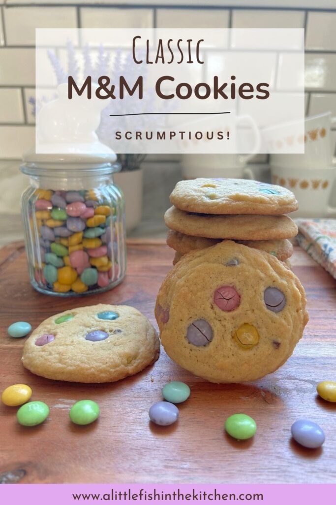 I’ve got these cookies all dressed up for spring in these photos; I absolutely love the spring-themed, pastel-colored M&M candies. They may be my favorite version of the famous candy… but I will eat them in any season! π I’ve featured them before in my recipe post for an easy, no-bake Fruity Snack Mix..